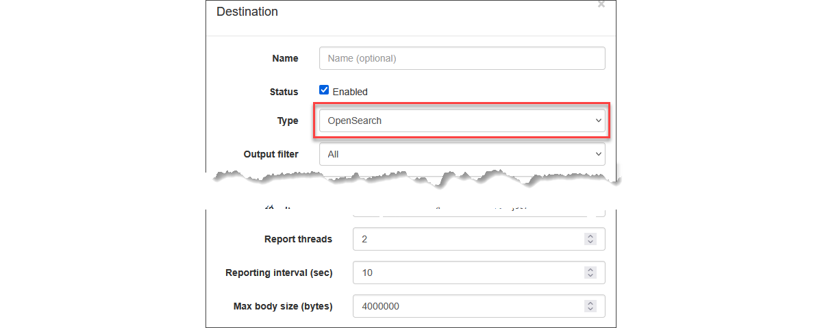 Use this output type to send NFO data to OpenSearch (e.g. Amazon OpenSearch Service).