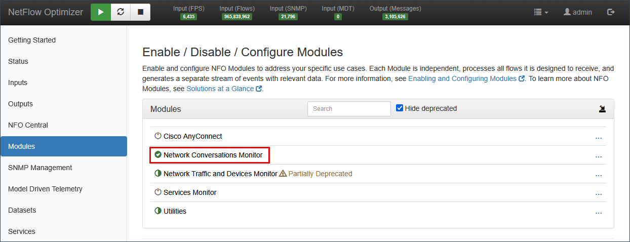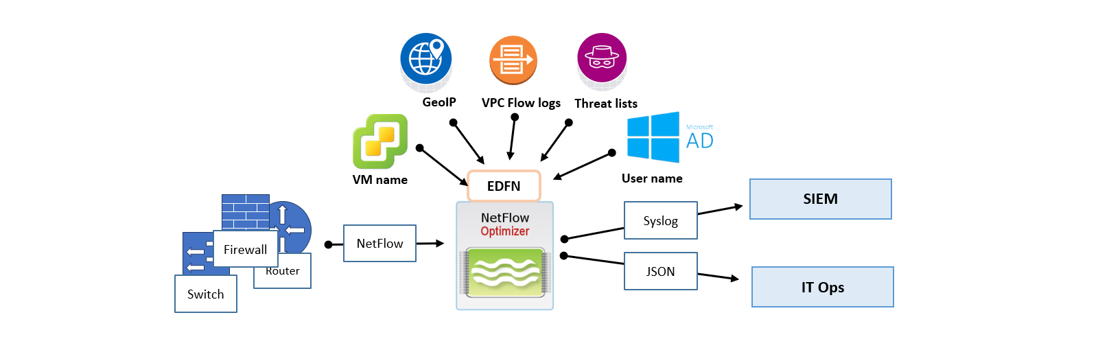 Unlike a basic collector, NFO processes data through "Modules." This is where deduplication, flow aggregation, enrichment, and "stitching" occur.