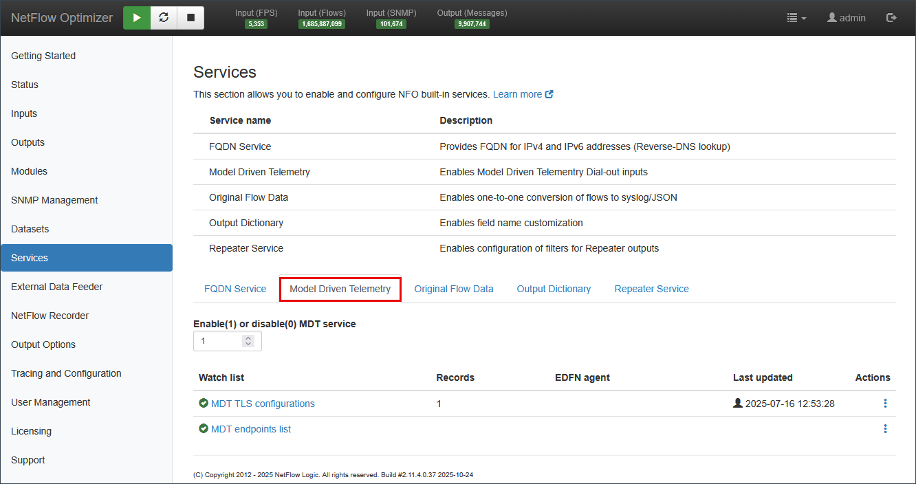 To enable NFO to receive and process MDT data, you need to configure MDT Inputs.