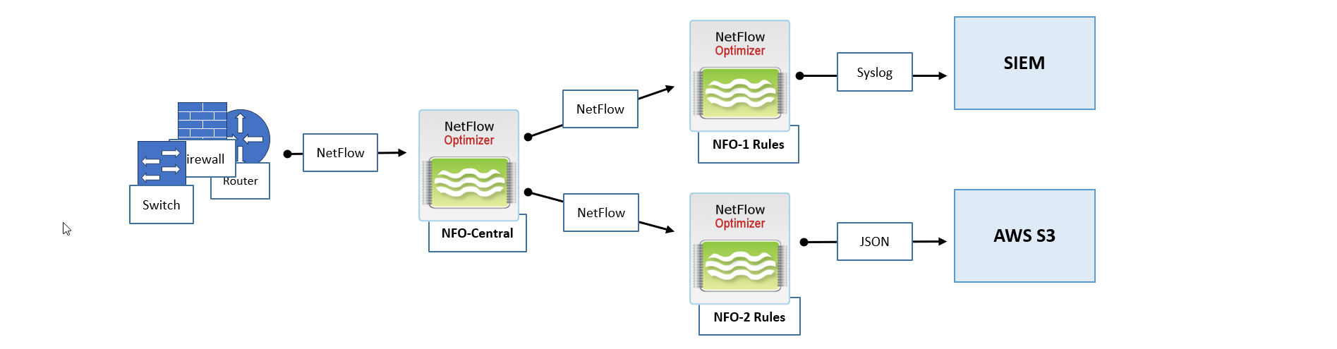 A hybrid environment, combining on-premises infrastructure with cloud resources, presents unique challenges and opportunities for network flow collection and analysis. NetFlow Optimizer (NFO) can be strategically deployed in such environments to provide comprehensive visibility across your entire infrastructure.