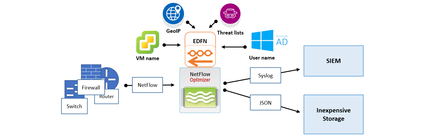 - Traffic flows from your edge devices (e.g., IPFIX format) are forwarded to NFO-2.