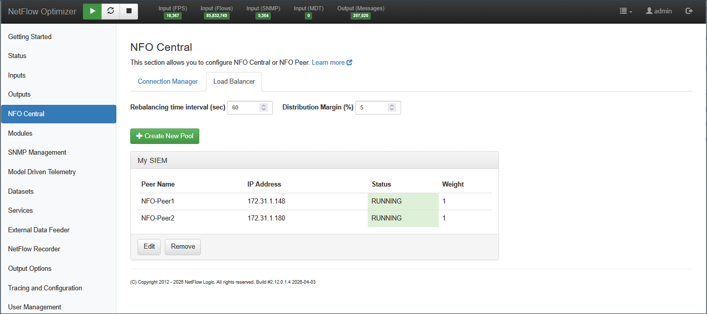 After the pool is saved, NFO Central will begin distributing traffic from your exporters to the peers within that pool, dynamically balancing the load based on real-time ingestion rates.